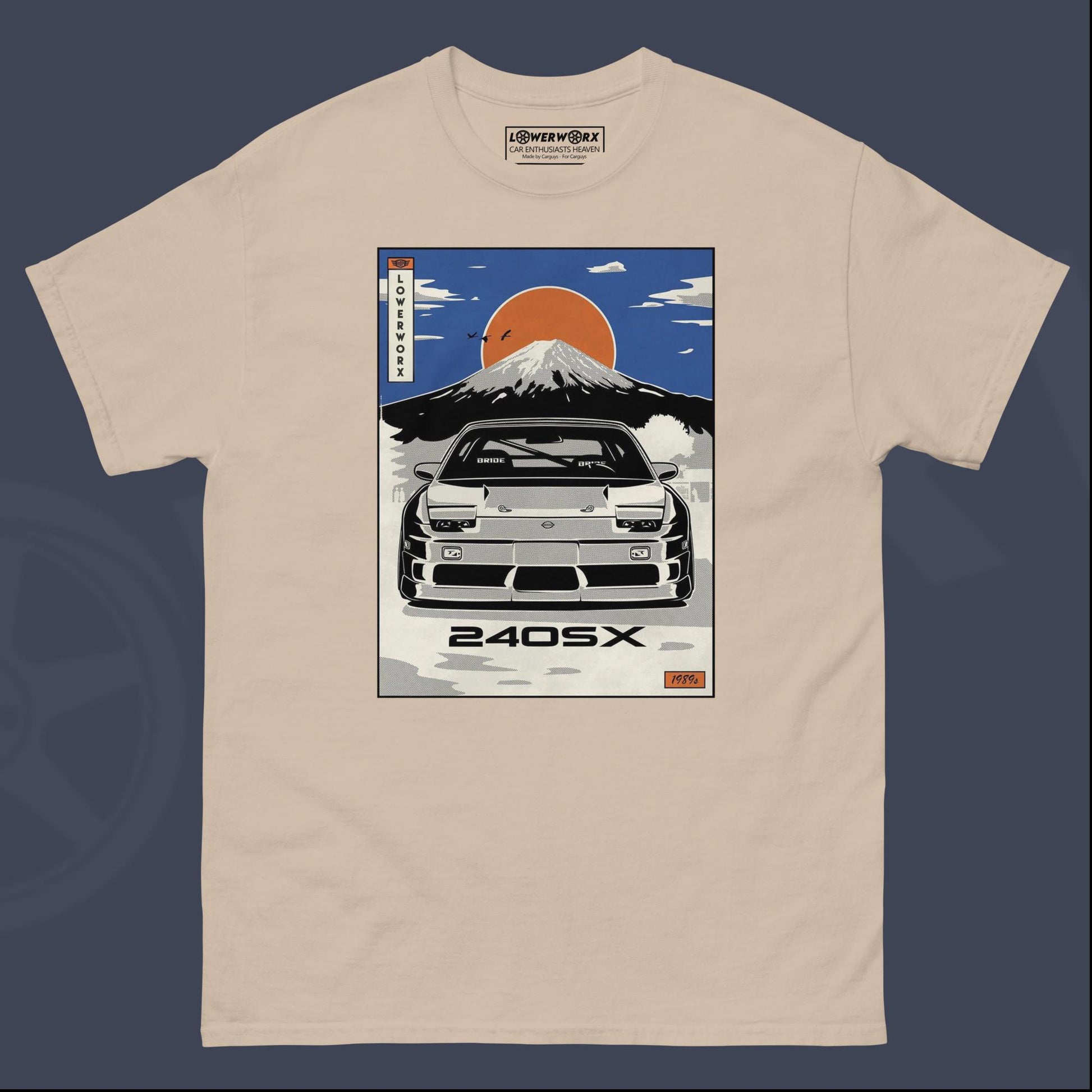 A beautiful vintage design with the beloved 240SX and the iconic mount Fuju in the background. We can almost smell the JDM vibes!